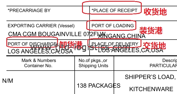 在貨代、物流、船舶、港口等領(lǐng)域,經(jīng)常聽到起運港、中轉(zhuǎn)港、目的港等說法,在海運提單上的顯示如下圖: