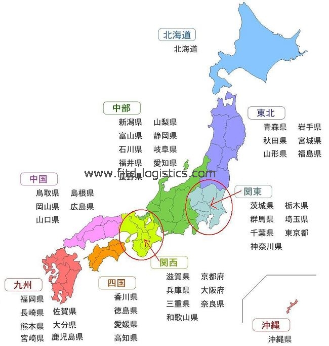 日本根據(jù)地理位置分為關(guān)東航線和關(guān)西航線。關(guān)西航線的主要港口有:Kobe (神戶);Osaka(大阪);Moji(門司);Okinawa(沖繩)等。
