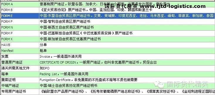 2)根據(jù)我國(guó)與不同國(guó)家簽訂的雙邊或多變貿(mào)易協(xié)議,原產(chǎn)地證分為很多格式,比如針對(duì)發(fā)達(dá)國(guó)家的FORM A, 針對(duì)孟加拉國(guó)、印度、韓國(guó)、斯里蘭卡的FORM B,針對(duì)東盟國(guó)家的FORM E, 針對(duì)智利的FORM F,針對(duì)新西蘭的FORM N,針對(duì)新加坡的FORM X等。