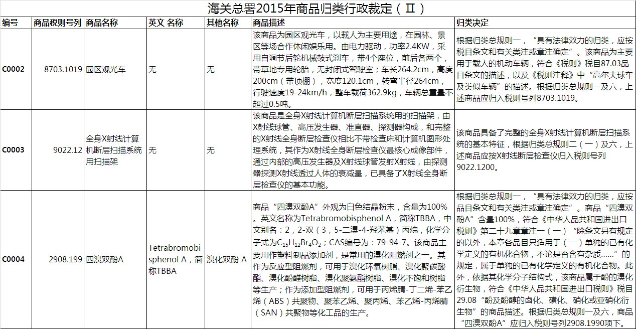 海關(guān)總署2015年商品歸類(lèi)行政裁定(Ⅱ)