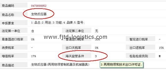 1. HS編碼8479899952生物反應(yīng)器——海關(guān)監(jiān)管條件還有——兩用物項和技術(shù)出口許可證(代碼3)