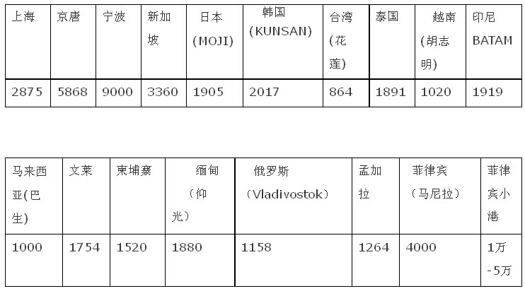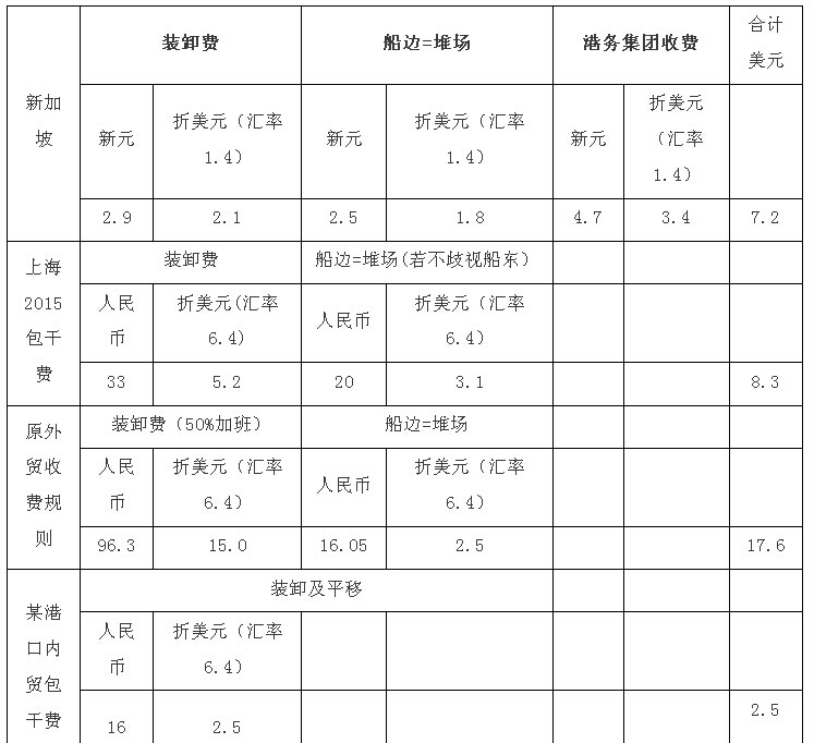 從上表對比可以見,上海港的2015年包干裝卸費已趨合理,盡管比新加坡稍高,但是提供港方機械,裝卸速度大為提高。當然,新加坡的裝卸費是很貴的,比臺灣、韓國貴得多,是泰國、越南的2-3倍。