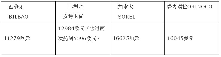 3萬多噸的船,靠下列歐美港口,拖輪費如下: