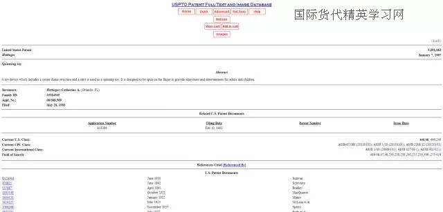 在前面的文章中,咱們方信知識產(chǎn)權(quán)的小編,就指尖陀螺的商標(biāo)專利問題做過一次查證!指尖陀螺在美國不符合外觀申請的條件,而其英文FIDGET SPINNERY有登記申請的記錄。近日,指尖陀螺這款玩具的發(fā)明人開始為人所知。據(jù)證實,指尖陀螺的雛形是迷你旋轉(zhuǎn)器,是一位美國患重癥肌無力的媽媽 Catherine A. Hettinger 為自己女兒而發(fā)明的玩具,她在1993年5月28日向美國官方提交了“spinner toy”的發(fā)明專利申請,于1997年1月7號獲準(zhǔn)注冊。而當(dāng)時這款玩具并沒有熱賣,Catherine A. Hettinger也沒能因為這款發(fā)明獲得收益,最后因為無法擔(dān)負(fù)專利的續(xù)展費,在2005年1月7號,這項發(fā)明專利失效了。