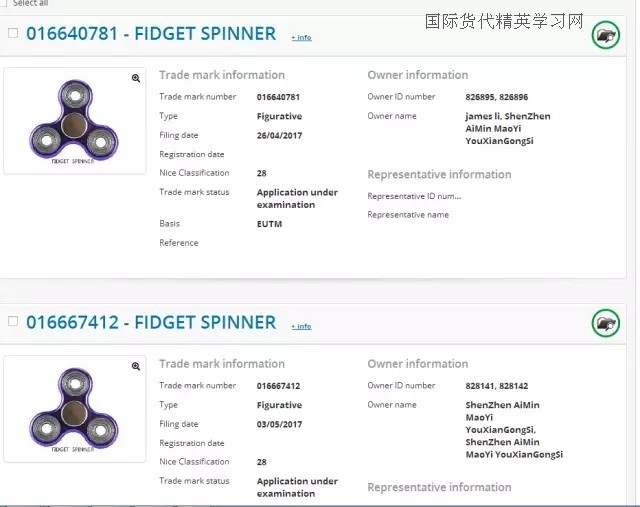 看到這里,我想大家都感受到從去年指尖陀螺fidget spinner開始火爆,下半年后fidget spinner的商標(biāo)在各國紛紛申請注冊,隨之也漸漸火熱的fidget pen和fidget cube也在今年年初開始陸續(xù)被申請商標(biāo),在商火紛飛的年代各位大神對知識產(chǎn)權(quán)的重視度越來越高,敏銳度也越來越驚人了。