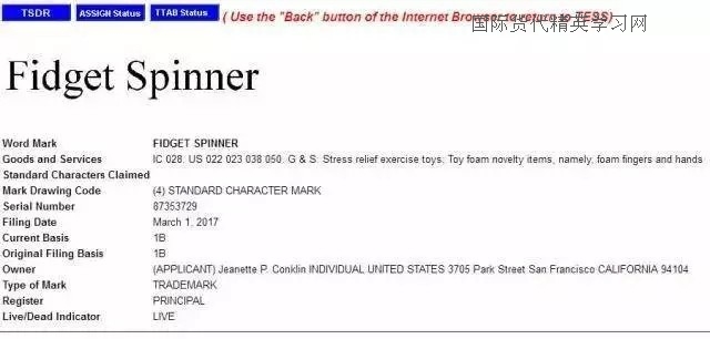 (美國fidget spinner商標(biāo))