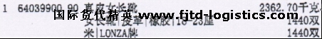 第三行“1440雙”是成交單位及數(shù)量(即外貿(mào)合同或發(fā)票的單位及數(shù)量)。