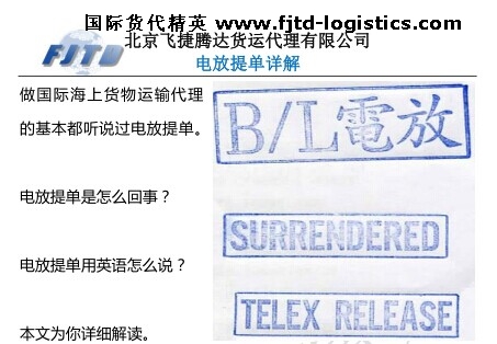 國際海運(yùn)中的提單電放(Telex release B/L)是什么意思?