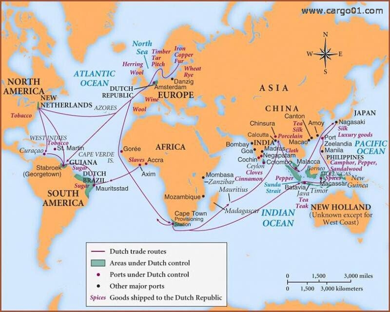 有趣的是,以后世界政治經(jīng)濟(jì)舞臺的主角也都來自麥金德所說的“世界島”的邊緣,從葡萄牙、西班牙、荷蘭、英國,再到美國。這些國家都以航海貿(mào)易起家,利用船舶、碼頭等輕資產(chǎn)發(fā)展跨洋貿(mào)易,再通過國際貿(mào)易帶動國內(nèi)貿(mào)易和制造業(yè)的發(fā)展。