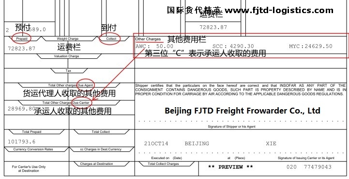 國際航空運單上的AWC、AWA、MYC、SCC等是什么費用?