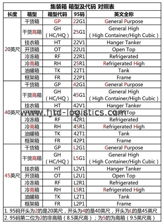 集裝箱箱型及其代碼對(duì)照表
