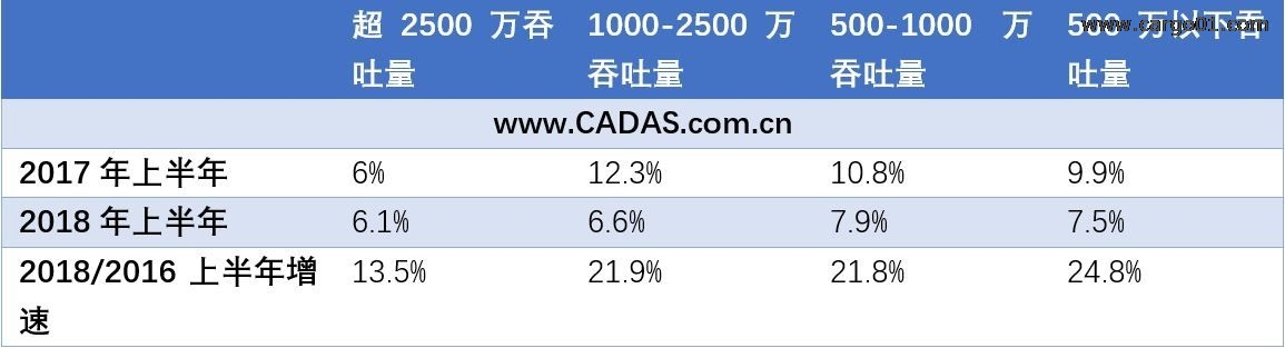 從不同規(guī)模機場吞吐量增速觀察,2500萬吞吐量以下機場增速明顯放緩。但500-1000萬吞吐量、1000萬-2500萬吞吐量規(guī)模機場增速持續(xù)保持領(lǐng)先。若對比2016年同期,可以觀察到中小機場明顯增長更快。吞吐量超過2500萬機場增速低于1000-2500萬吞吐量機場,一方面,反映出大型航空樞紐趨于飽和,另一方面,也反映出中等規(guī)模機場受低成本航空驅(qū)動所帶來的變化。