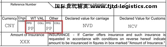 航空運單上常見的PPD下面填寫PP,COLL下面填寫CC又是什么意思?