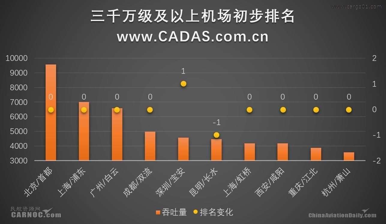 CADAS:2017年中國主要機(jī)場吞吐量初步排名