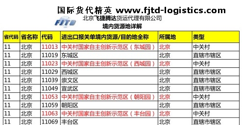 報關(guān)“境內(nèi)貨源地”和“境內(nèi)目的地”代碼表